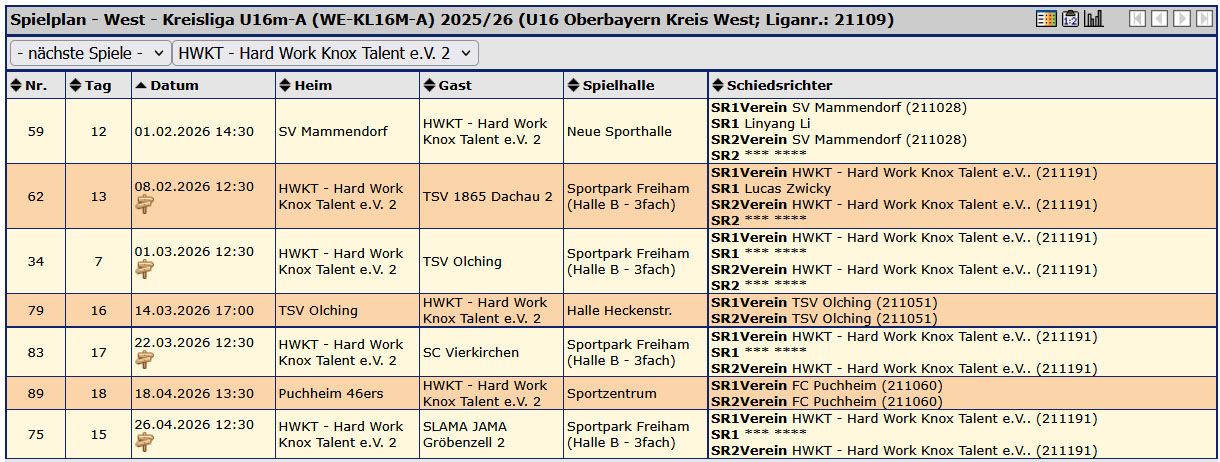 Spielplan: